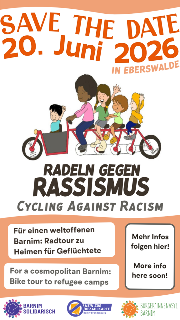Auch dieses Jahr wollen wir wieder für Gerechtigkeit radeln! Wir sind laut gegen die isolierte Unterbringung von Menschen, die ein besseres Leben suchen. Wir demonstrieren gegen die unmenschliche Abschiebe-Politik. Gegen Rassismus und für das Leben. Für mehr Solidarität und Menschenwürde!